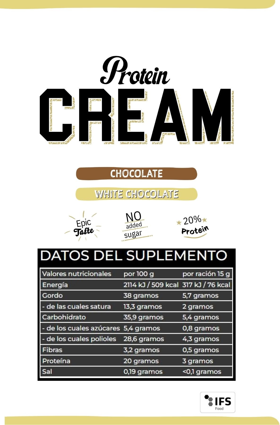 PROTEIN CREAM | CREMA PROTEICA (20%) PARA UNTAR / 330g - SUGAR FREE